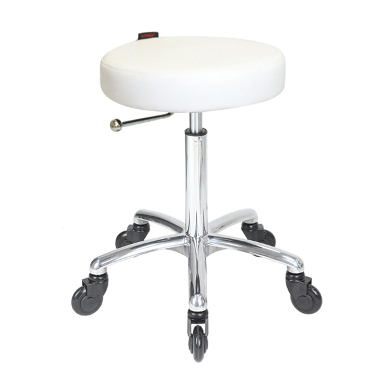 Turbo White Salon Stool - Chrome Base - Click'n Clean Castor Wheels